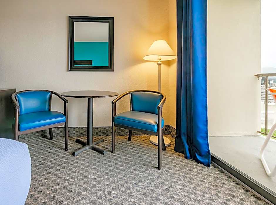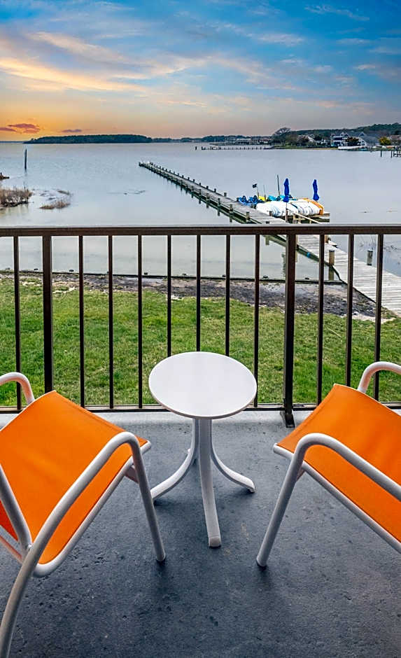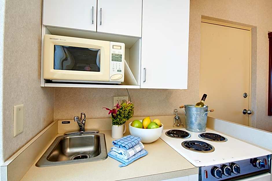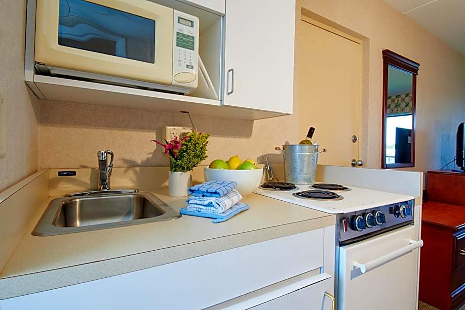 This room features views of the bay, a kitchenette, and a flat-screen TV.